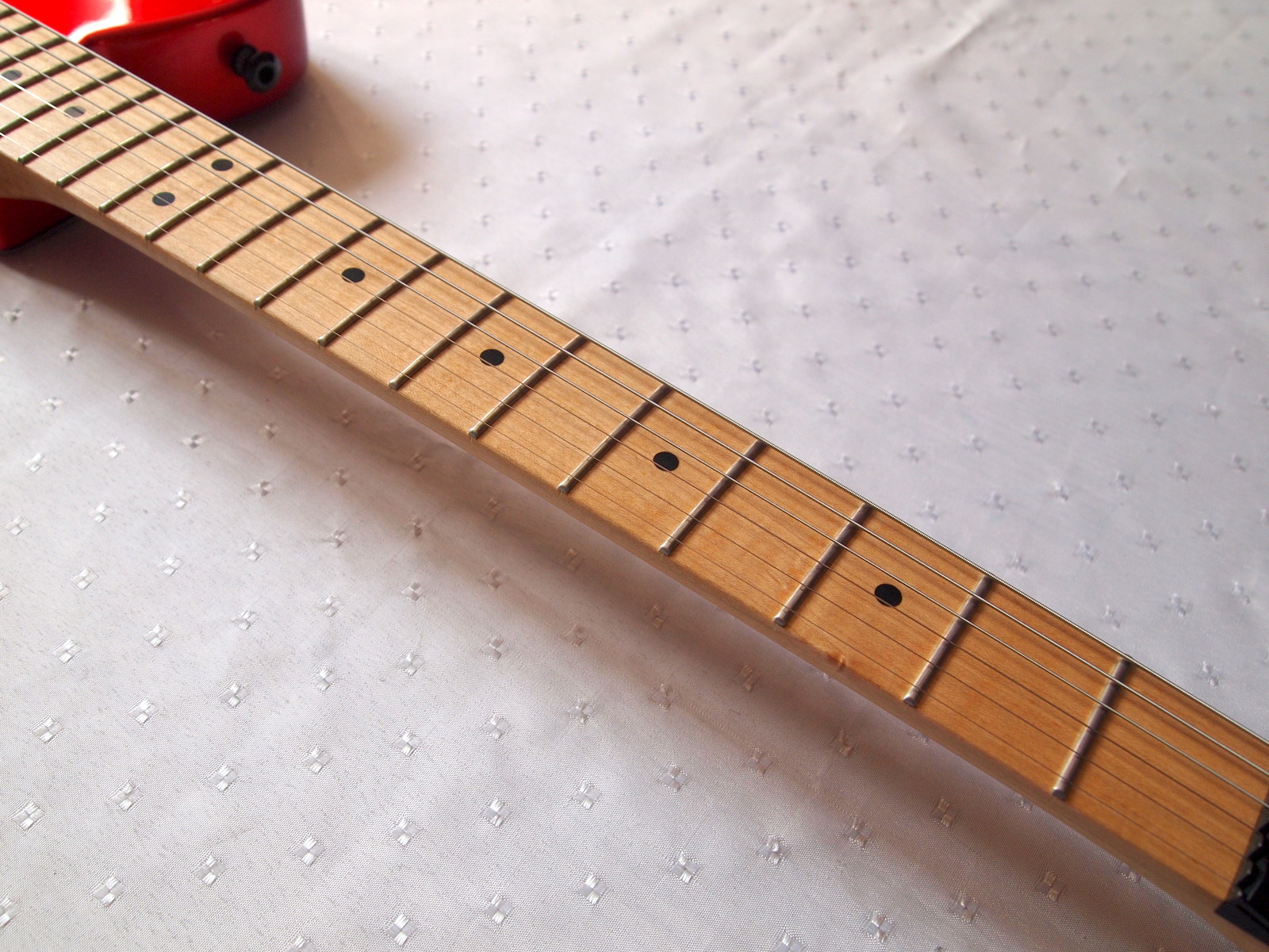 Мультирадиусный гриф более круглый к головке и более плоский к грифу идентичен грифу гитары Eddie Van Halen Frankenstein Replica стоимостью в районе 10 000 долларов.