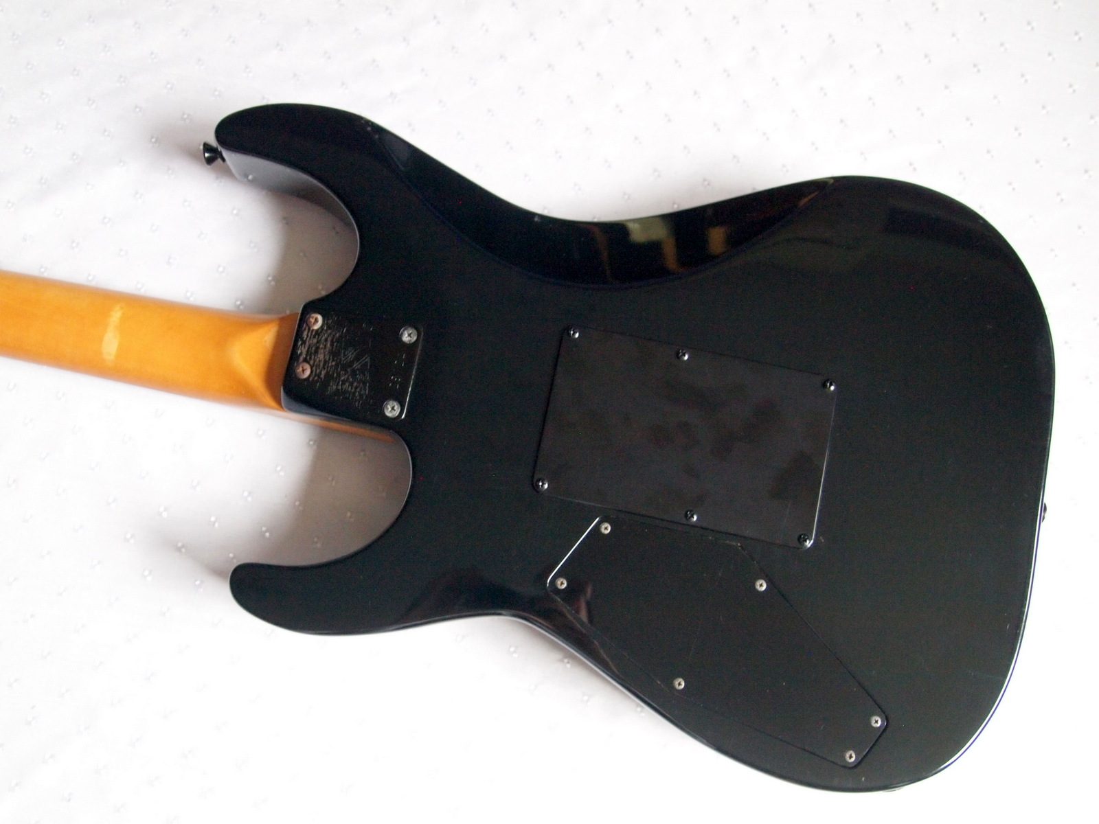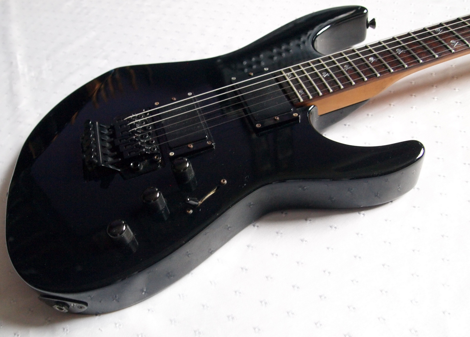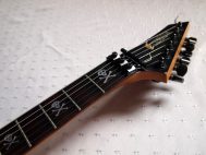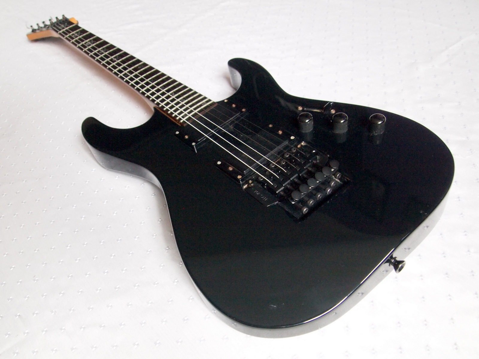 Модель имени великого и ужасного Kirk Hammett из поистине народной группы Metallica,произведенная на фабрике ESP. Радикально черный цвет, черепа на накладке, 24 лада, два хамбакера-стопроцентное соотношение звука и имиджа!!! Инструмент из самых первых годов выпуска, c, лого Produced by ESP на голове.