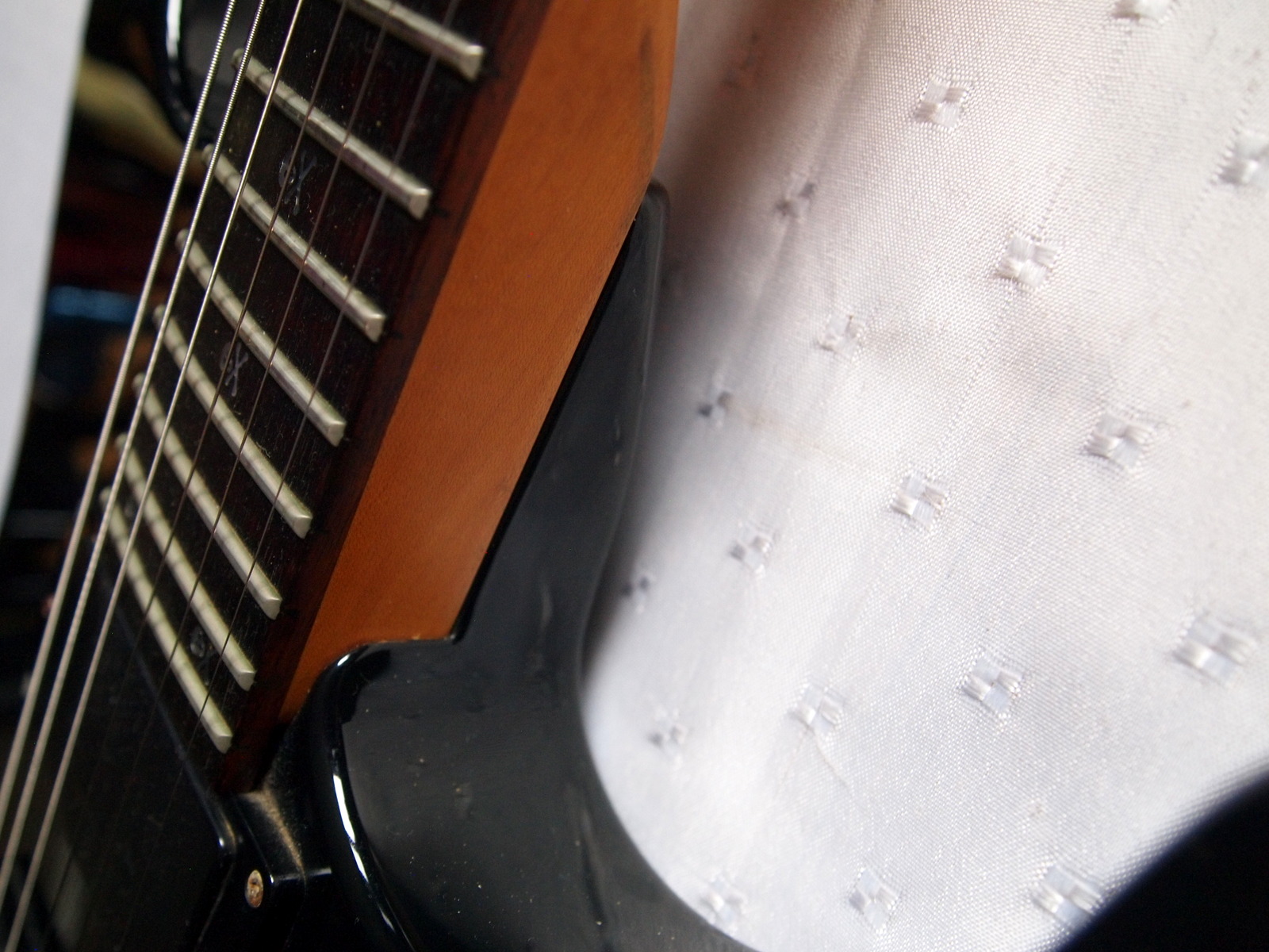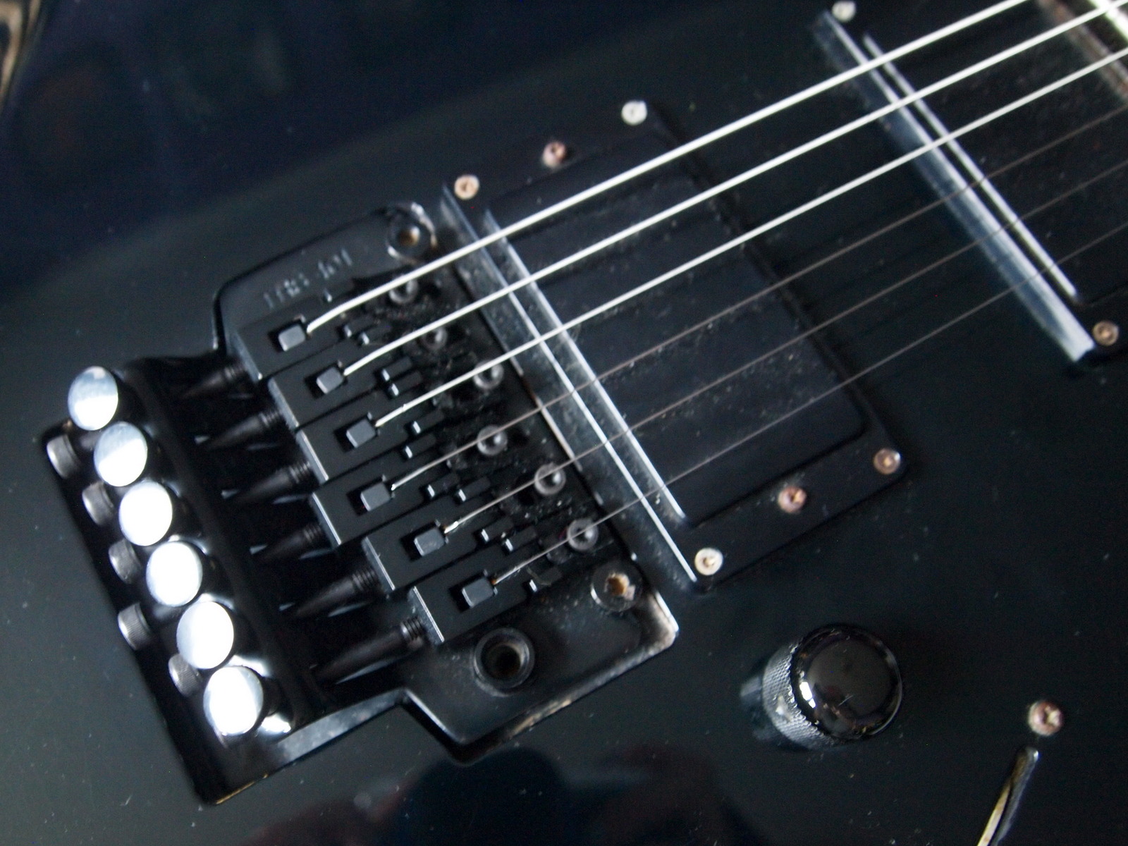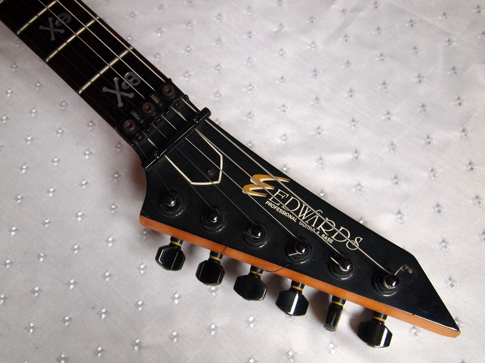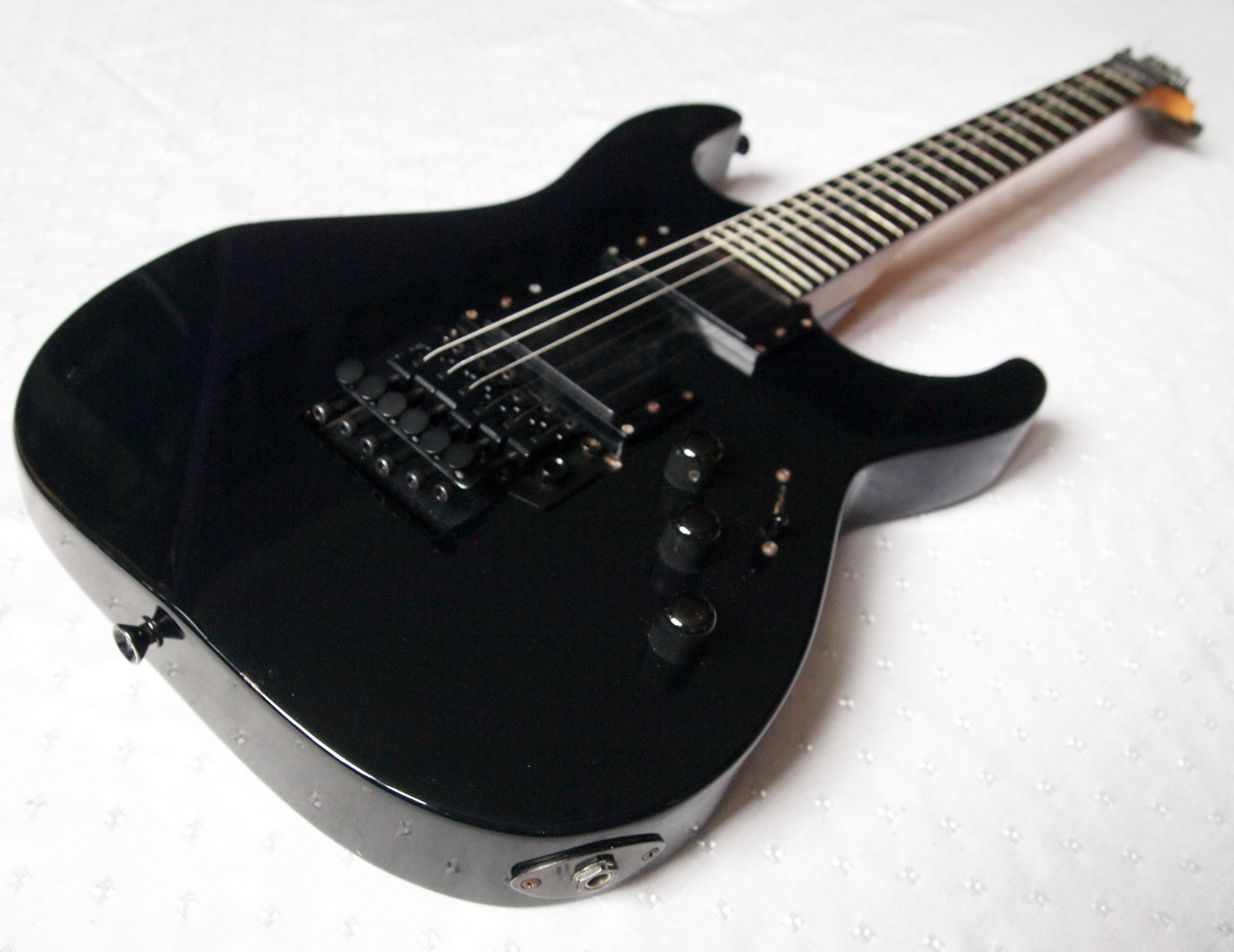 Модель имени великого и ужасного Kirk Hammett из поистине народной группы Metallica,произведенная на фабрике ESP. Радикально черный цвет, черепа на накладке, 24 лада, два хамбакера-стопроцентное соотношение звука и имиджа!!! Инструмент из самых первых годов выпуска, c, лого Produced by ESP на голове.