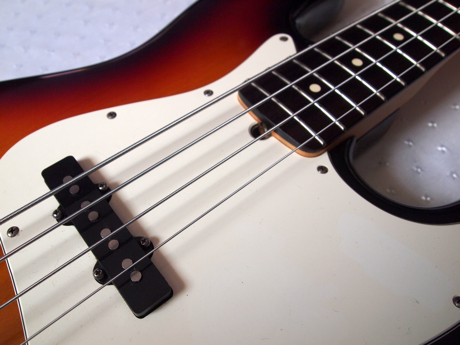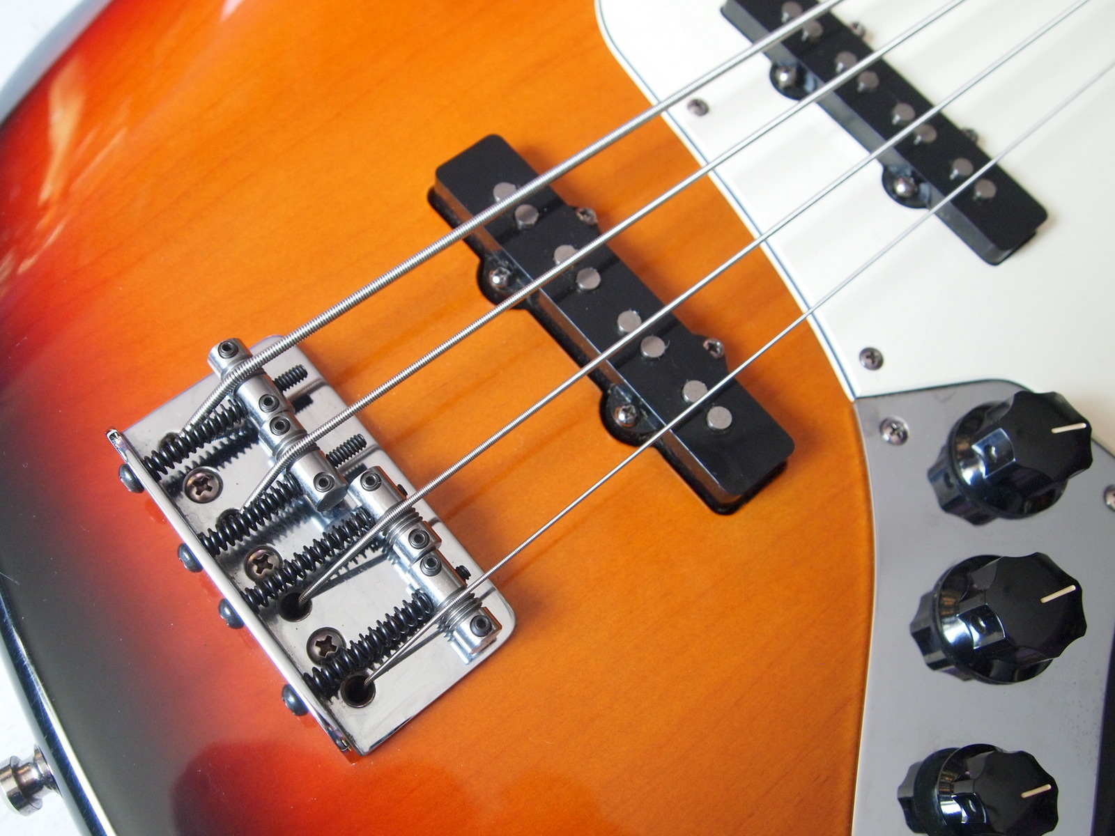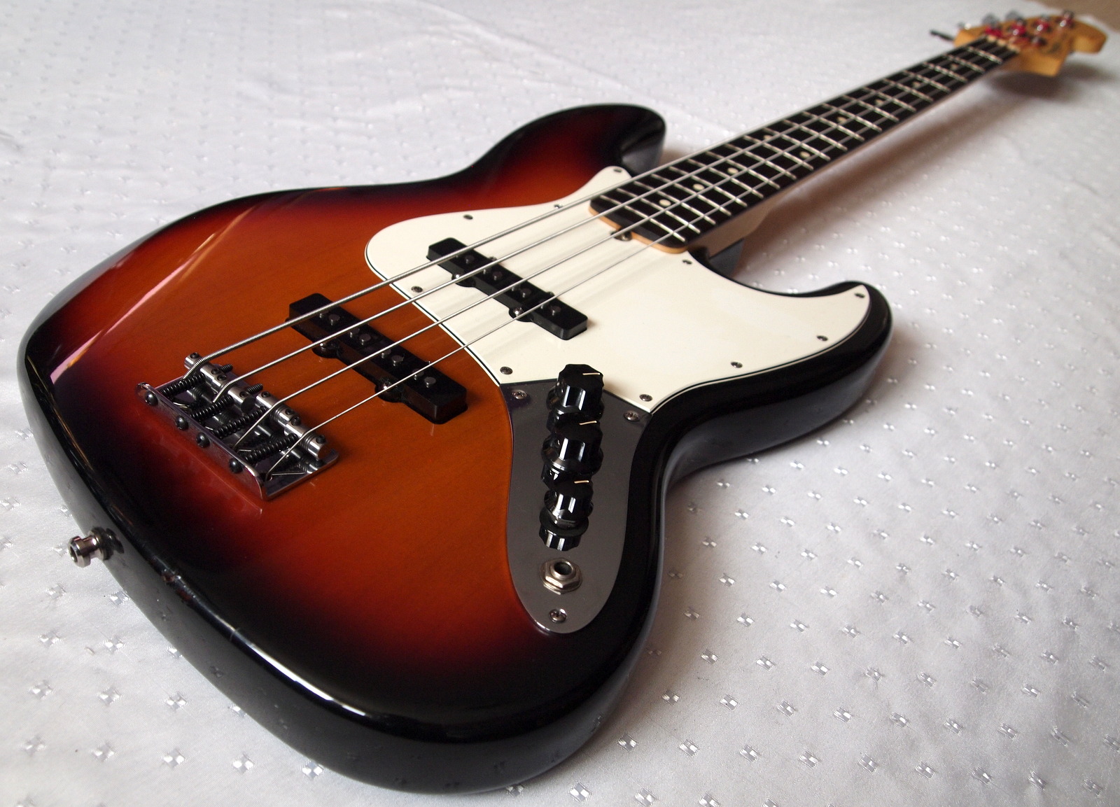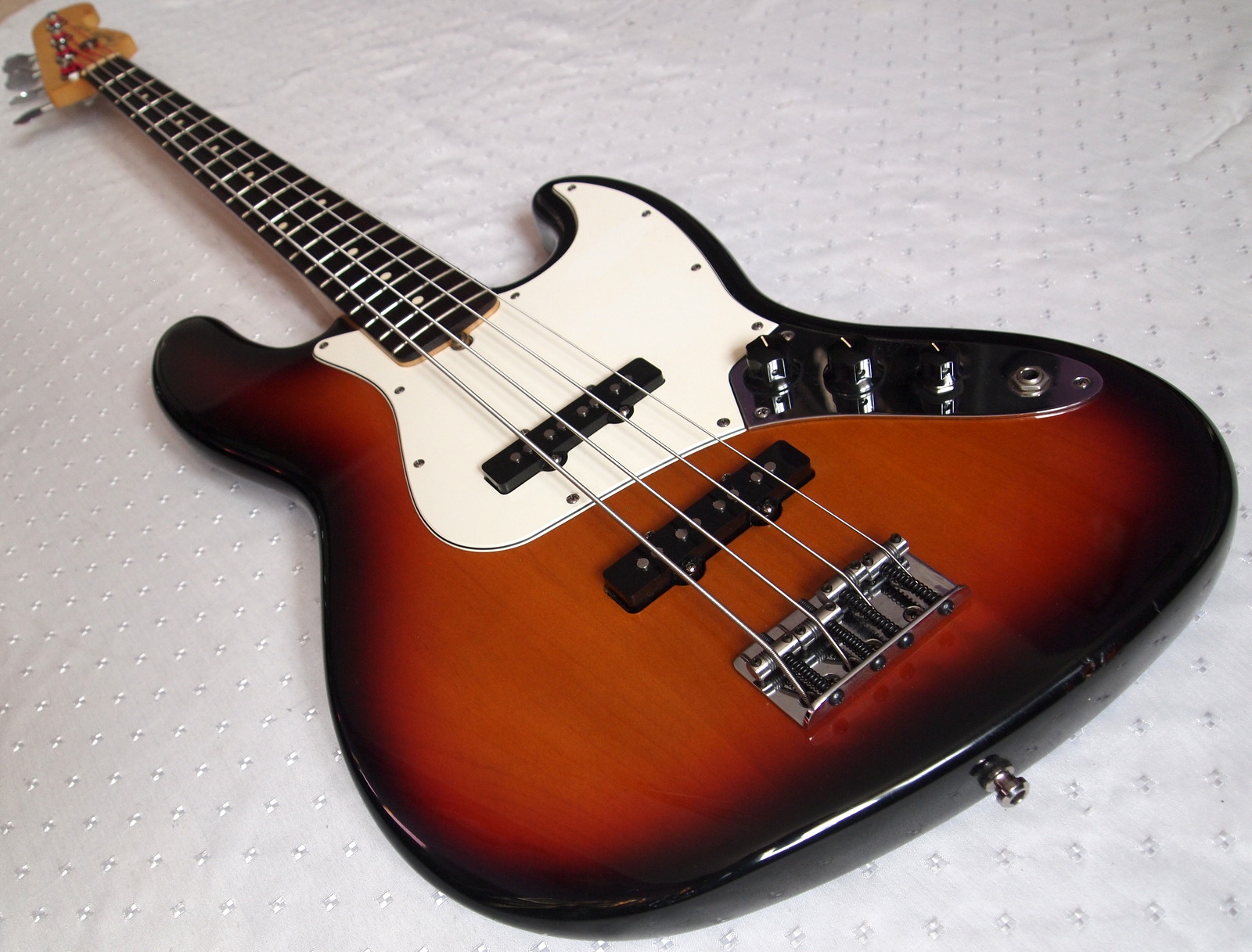Классический американский Jazz Bass в классическом цвете 3- Colour Sunburst, , с «тем самым» классическим саундом с плотным и округлым низом, читаемой серединой и ярким верхом, который придется ко двору где угодно от блюза и бигбэндов до хардкора и трип-хопа. Благодяря бриджу с возможностью установки струн сквозь корпус/поверх корпуса, тоже можно менять оттенок звучания.Инструмент в отличном состоянии, разыгран, прослужит верой и правдой много лет.