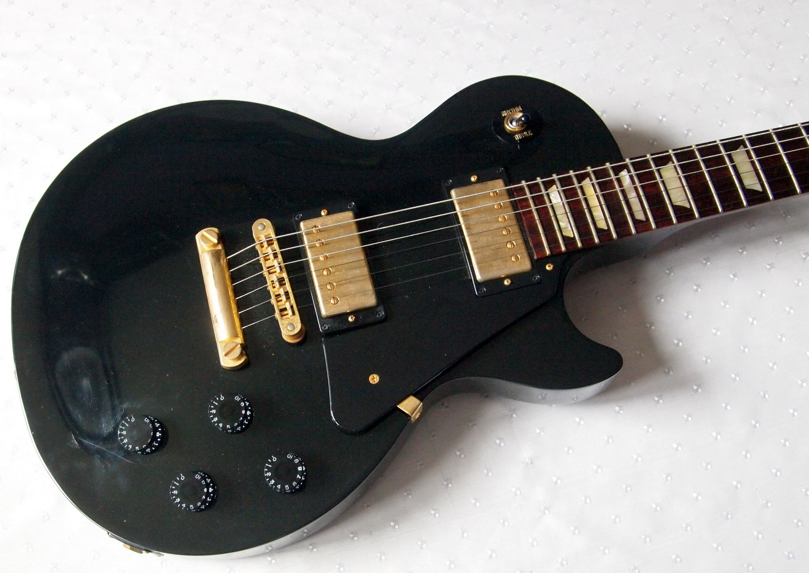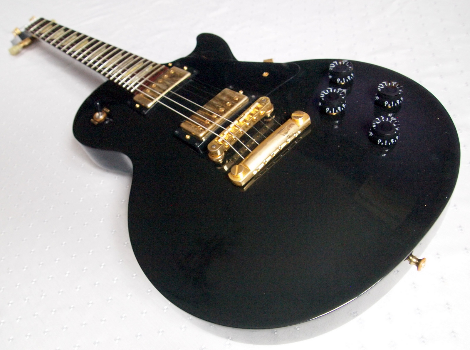 У модели Les Paul Studio отсутствуют окантовка корпуса и грифа, за счет чего гитара смотрится более строго и выдает классический саунд Les Paul при достаточно дружелюбной цене.