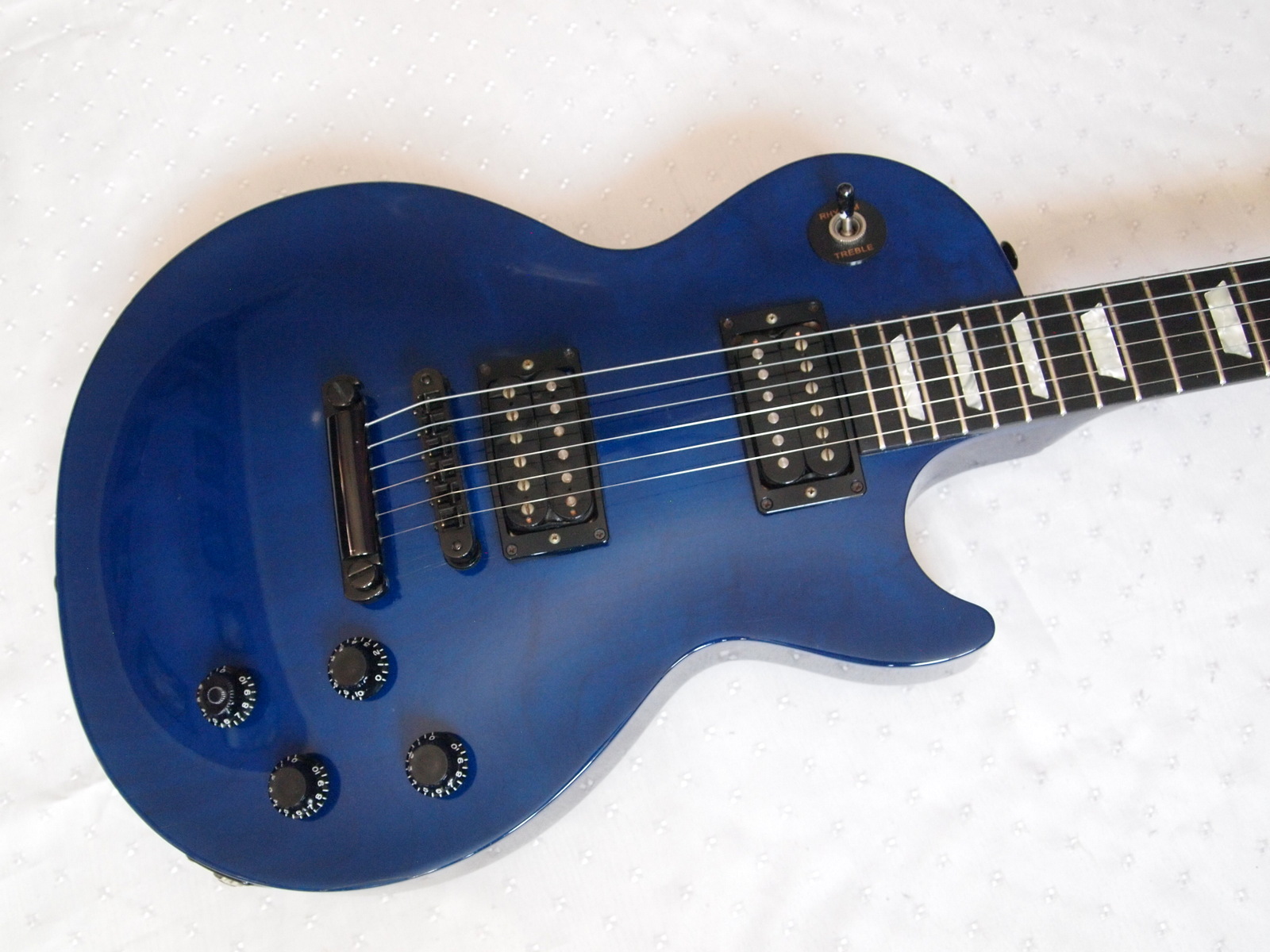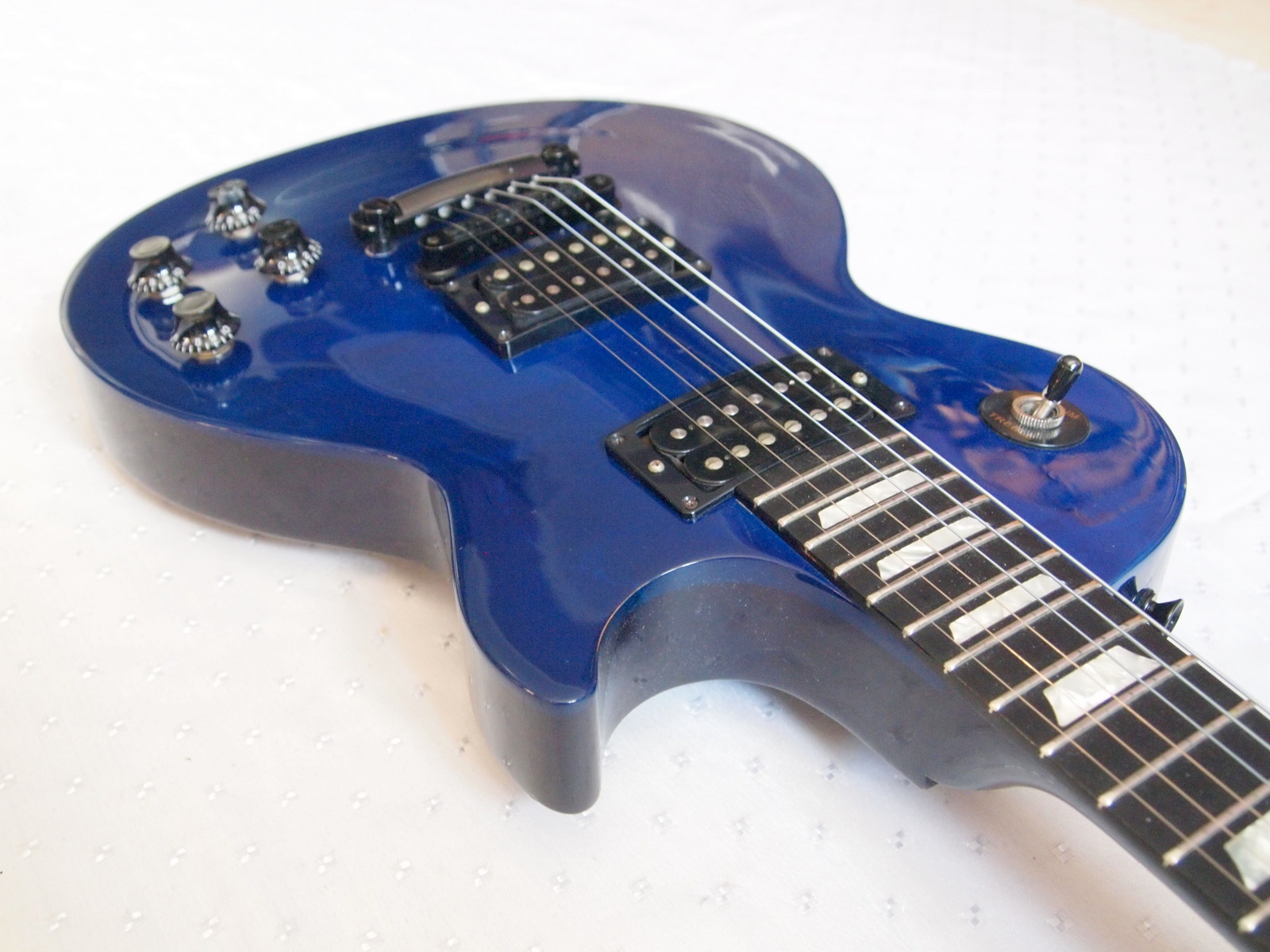 Редкая модель от Gibson- Studio Lite,накладка на грифе из эбони как на ЛП кастом ,на деке есть кленовые окантовки, сама дека чуть тоньше чем обычный ЛП , существенно легче в весе и немного верхастей в звуке, и на ней установлен сет EMG, благодаря чему можно наваливать гейна, не боясь фона и наводок:) Благодаря всему вышеперечисленному у гитары при классическом леспольном сустейне невероятная разборчивость,прекрасная артикуляция и яркая атака, флажолетные штучки в духе Zakk Wylde прямо вылетают из под пальцев.
