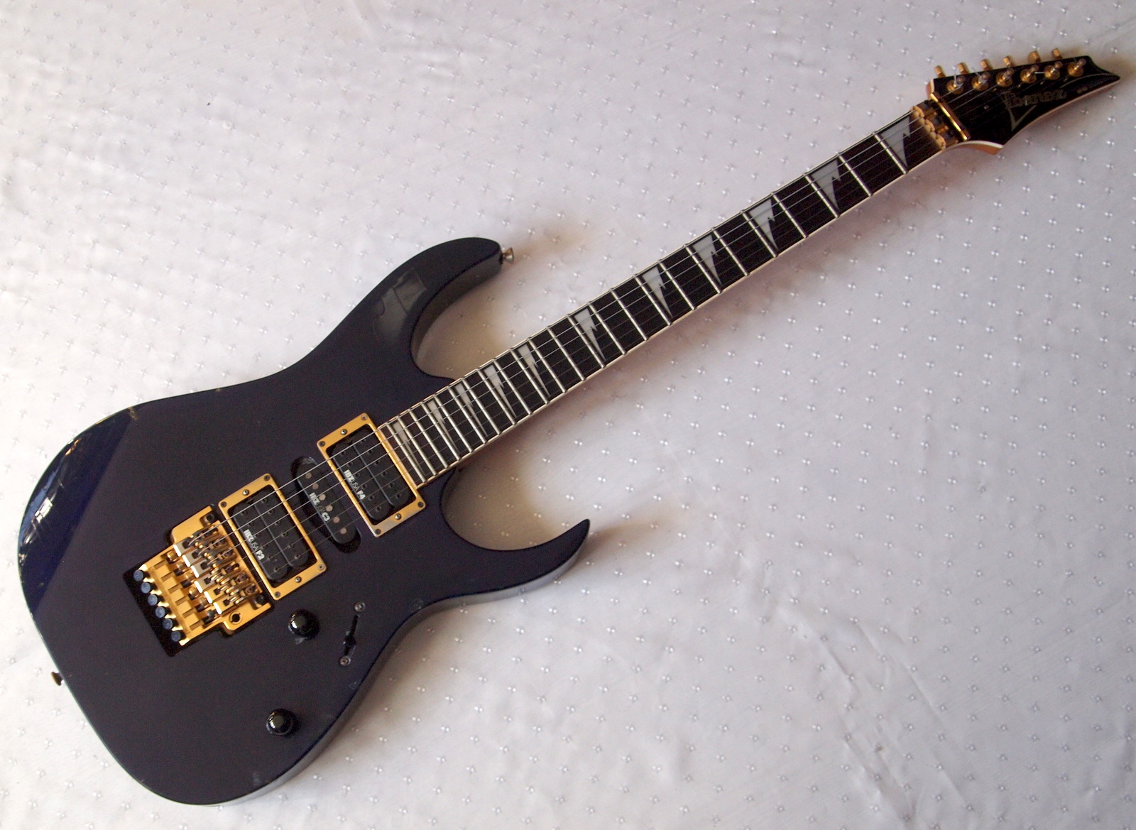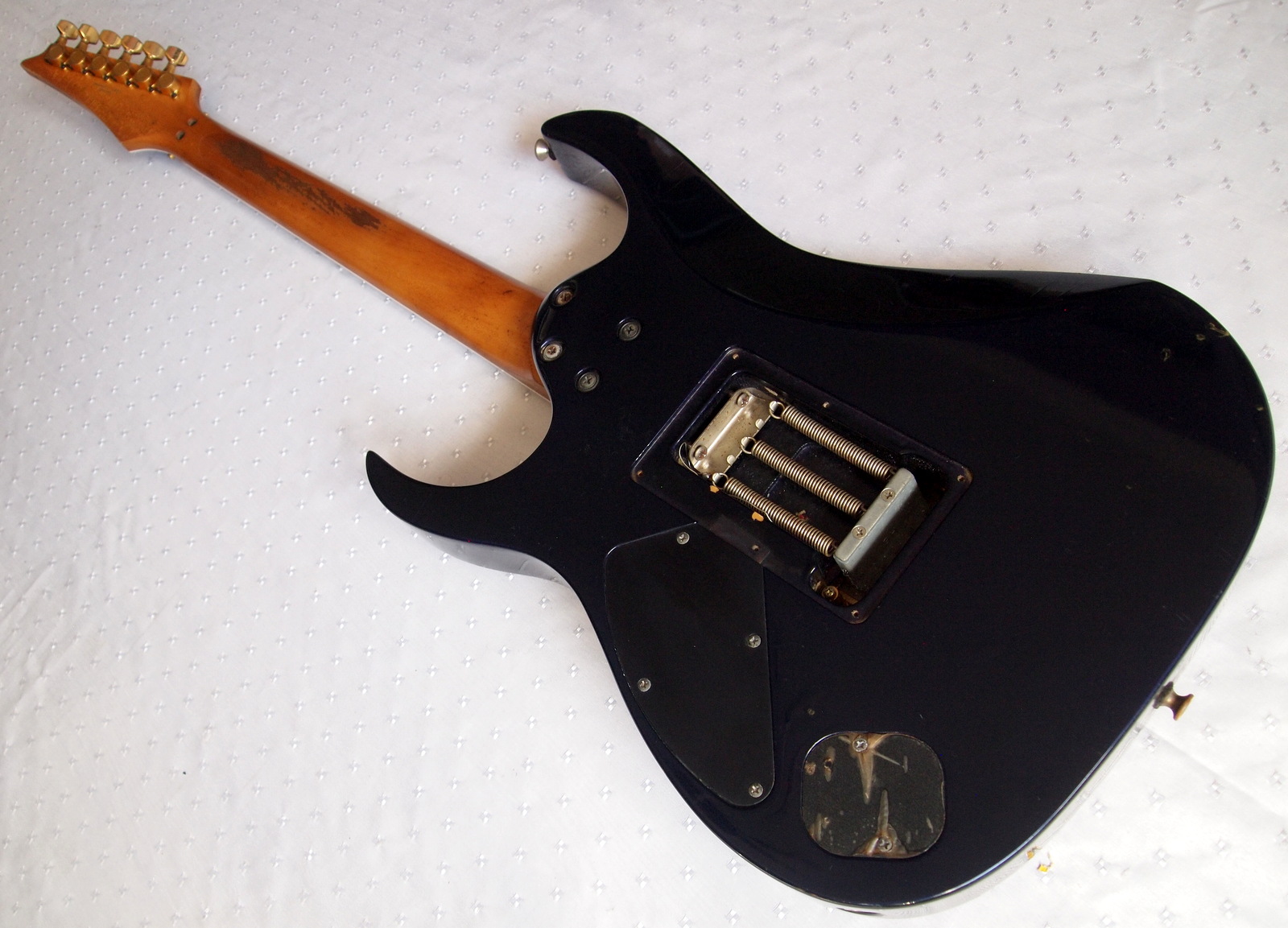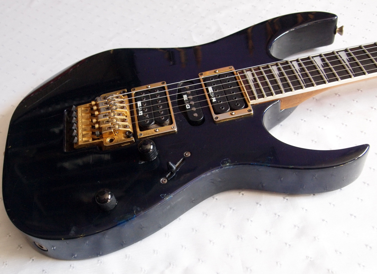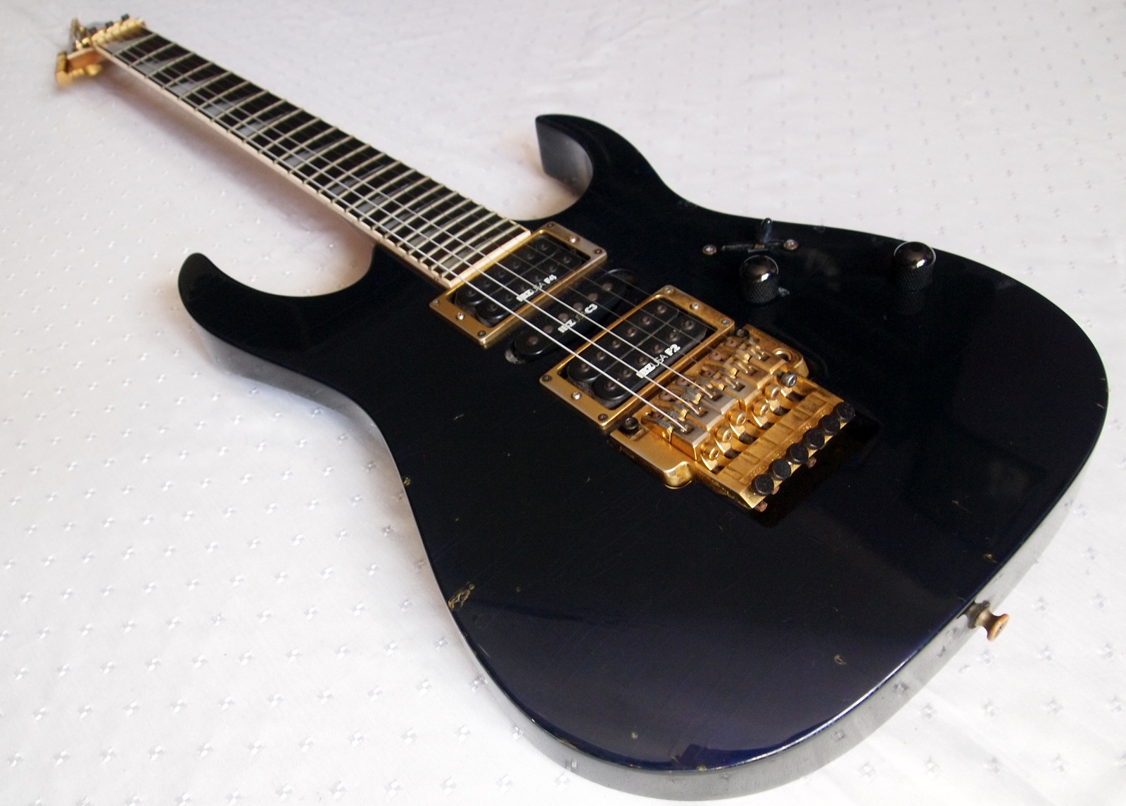 Инструмент из топовой 7 серии, отличающийся американскими датчиками произведенными специально для Ibanez на заводе Dimarzio, маркерами в виде акульего зуба, окантовками и золотым железом. Конечно на ней есть какие то сколы и царапины, ведь гитаре 32 года и на ней все это время играли, и она поет на каждой ноте, у нее отличный сустейн и читаемость. Но это инструмент который сделан в золотой век Ibanez, когда гитары делали навечно, технически он в превосходном состоянии, гриф прямой, лады с огромным запасом, механика и электроника в полном порядке. В общем это шикарный инструмент который с легкостью задвигает современные серии Prestige.