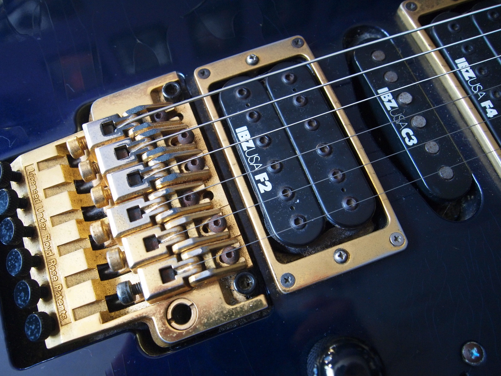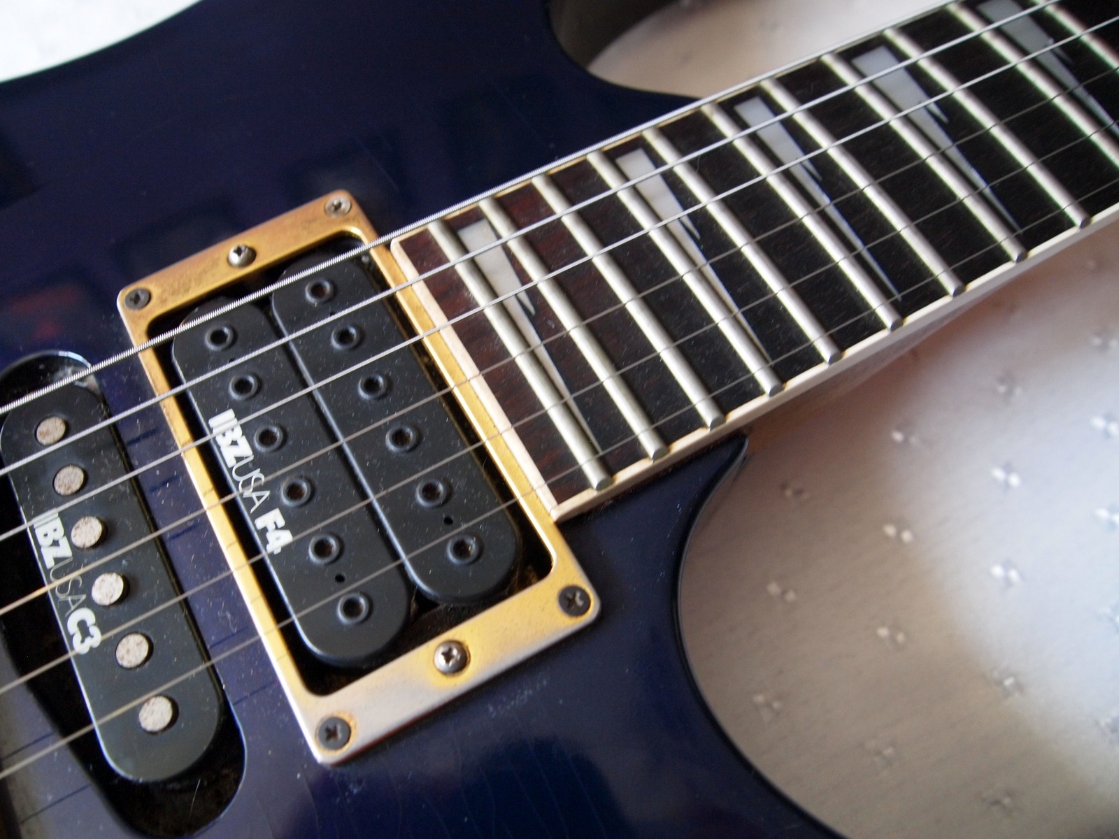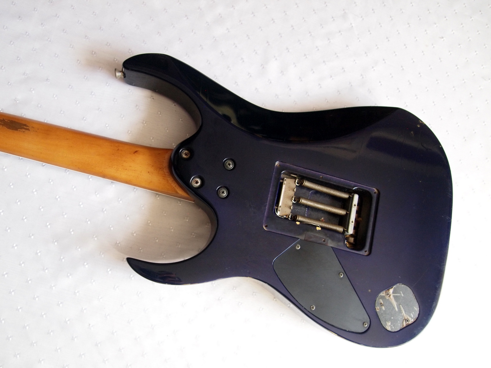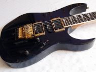Инструмент из топовой 7 серии, отличающийся американскими датчиками произведенными специально для Ibanez на заводе Dimarzio, маркерами в виде акульего зуба, окантовками и золотым железом. Конечно на ней есть какие то сколы и царапины, ведь гитаре 32 года и на ней все это время играли, и она поет на каждой ноте, у нее отличный сустейн и читаемость. Но это инструмент который сделан в золотой век Ibanez, когда гитары делали навечно, технически он в превосходном состоянии, гриф прямой, лады с огромным запасом, механика и электроника в полном порядке. В общем это шикарный инструмент который с легкостью задвигает современные серии Prestige.
