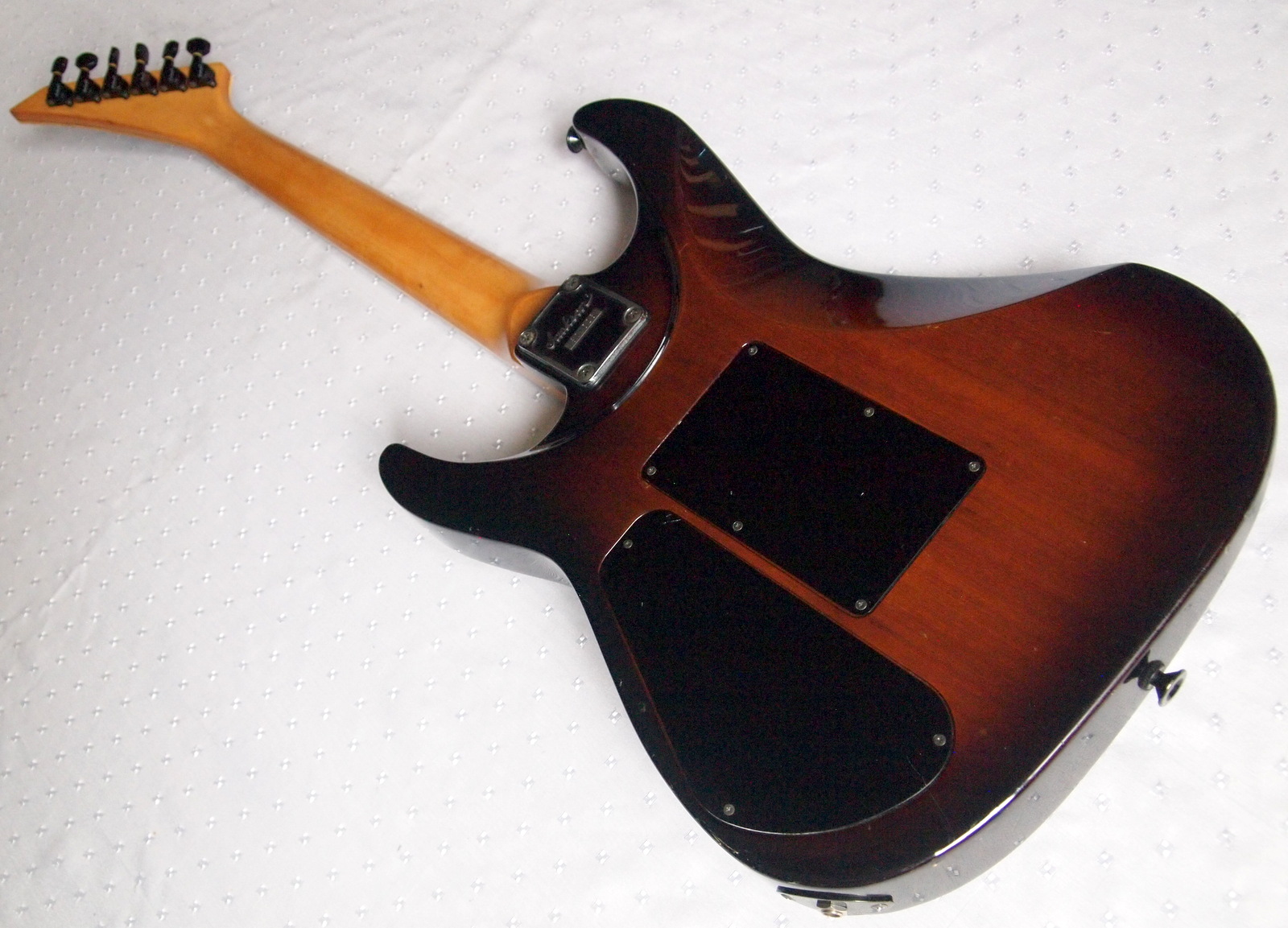 Технически полностью испраына, флойд,колки, электроника работают без проблем, гриф ровный, струны низко, косметически есть потертости, но ведь инструменту больше 30 лет.