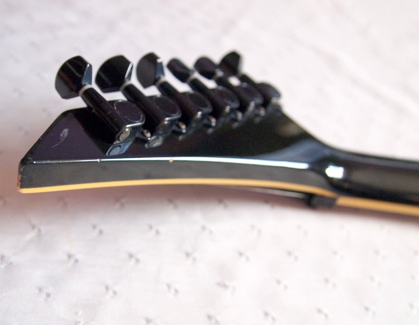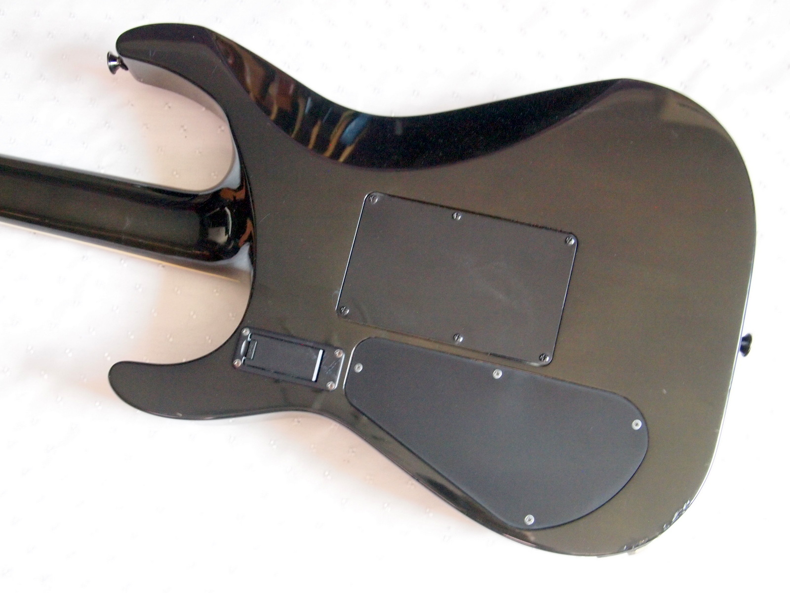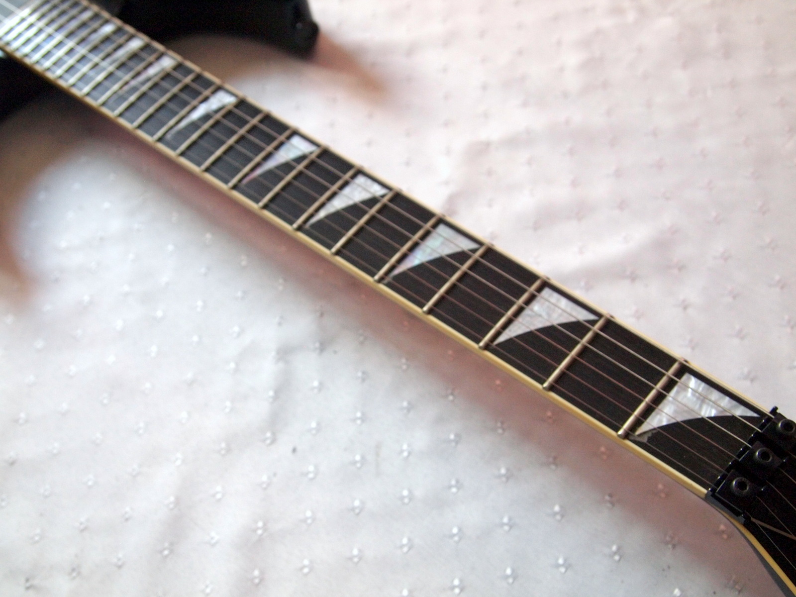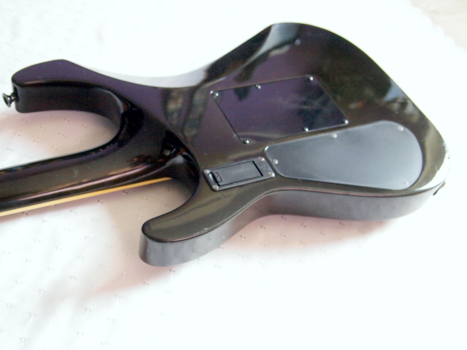 Очень красивый солоист из топовой серии нулевых годов 21 века, стоивший тогда по каталогу 183 000 Йен, что было равно почти 2000 USD. Сделан безо всяких компромиссов, кленовый гриф с накладкой из черного дерева идет сквозь ольховый корпус с кленовым топом, инструмент укомплектован звукоснимателями EMG и Floyd Rose Original, сам инструмент в цвете Trans Black и из под черного лака виден рисунок дерева.