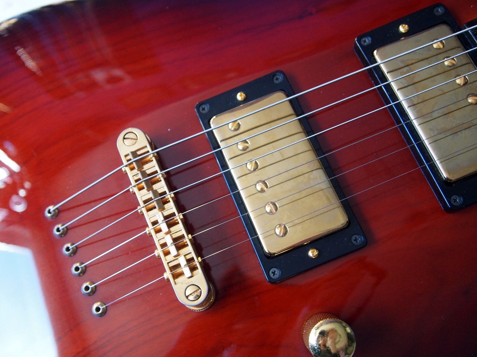 Очень красивый и редкий инструмент-безфлойдовый солоист с арочным топом и золотым железом. Отличается жестким и собранным звуком, яркая, хрустящая атака сочетается с отличным сустейном, свойственным сквозногрифовым инструментам. Инструмент полностью исправен, механика и электроника в полном порядке, лады с большим запасом, косметически тоже очень хорош!!!