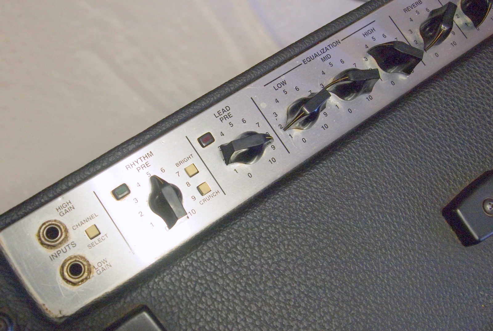 * на первом канале (rhythm) ручки регулировки pre-/post-gain, кнопки bright (добавляет высоких) и crunch