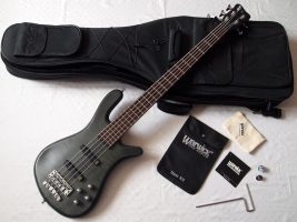 Warwick Thumb, когда то бывший вызовом стандартным басам. а сейчас сам ставщий одним из стандартов De Facto для басистов всего мира. Благодаря отборному экзотическому дереву (Овангкол и Венге) звук не менее отборный и экзотический- Если говорить утрированно, то овангкол — это звенящие верха, лязгающие и стреляющие низы, звук в целом прозрачный, и яркий, с характерным лязгом. Венге — это тот самый утробный рык, выступающая нижняя середина, округлые верха, мощные рычащие низы. Корпус сделан из двух кусков овангкола, о звуке которого написано выше, гриф из трех склеенных вдоль кусков венге, средний развернут на 180 градусов что делает гриф нечувствительным к сменам влажности и предохраняет от изгиба винтом . Невероятно откуда в таком компактно корпусе столько звука и мощи. Рык и характер слышен даже на неподключенном. Звук такой, что никакие хаугейновые гитары и ударные не могут задавить, но в то же время он не перетягивает одеяло на себя, а ровно»сидит» в миксе. Этот звук заполняет все, обволакивает, и в то же время толкает в грудь, его ни с чем не спутаешь — низкий утробный рык, округлость, плотность, обьем, но в то же время какая-то упругая колокольность на верхних позициях. Невероятная артикуляция, Слэп звучит потрясающе. Ровные шестнадцатые шикарно пульсируют. Самая деликатная игра слышна прекрасно.