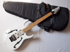 Самый редкий ибанез S- серии, производился всего один год в 1988, в этом цвете было выпущено всего 100 штук!!! Дека из красного дерева, с болченым через железную пятку грифом, профиля Wizard, звукосниматели Dimarzio изготовленные специально для ibanez, два индивидуальных выключателя каждого датчика, запирающееся тремоло Edge-это похоже на достаточно стандартную рок-гитару, но это библиографическая редкость!!!
